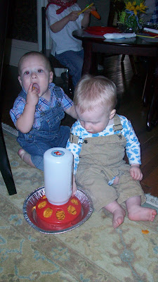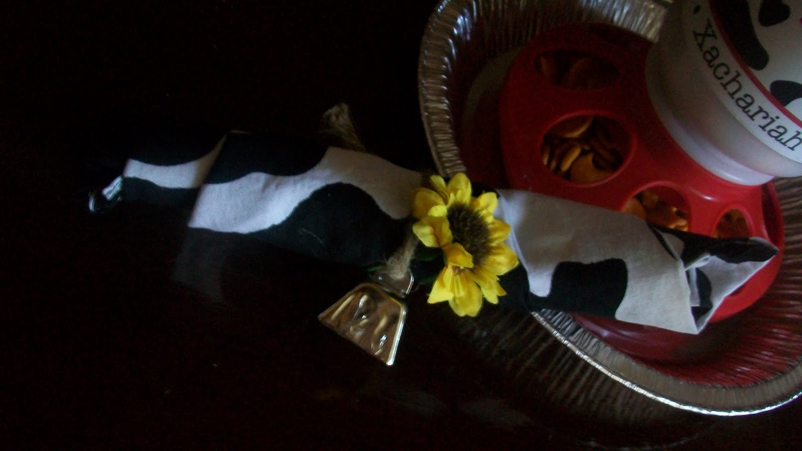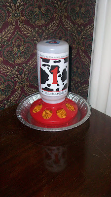 How cute are her napkins? (Cow bell and all!) You can see our logo on the chick feeder. Yes, I said chick feeder! She had little snacks for the kiddies setup in a CHICK feeder! How creative!
