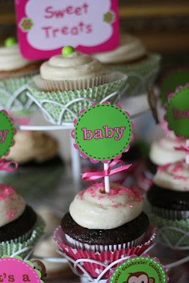 It’s baby shower season! (I know babies are born all year but it seems like I get invited to a lot of baby showers this time of year.) Our extremely talented client Marcie, who writes a blog entitled, Celebrating the Moments, shared with us these pictures of an amazing baby shower she orchestrated. Marcie, thank you for letting us design for you these monkey printables. We are pretty sure that people will go “bananas” when they see your amazing party!