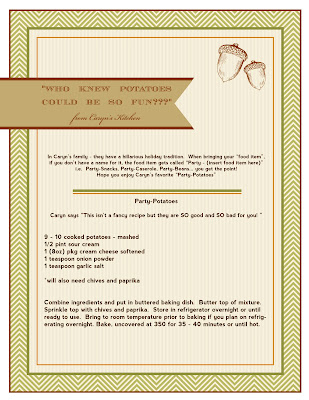 In Caryn’s family – they have a hillarious holiday tradition. When bringing your “food item”, if you don’t have a name for it, the food item gets called “Party – (insert food item here)” i.e. Party-Snacks, Party-Caserole, Party-Beans… you get the point! Hope you enjoy Caryn’s favorite “Party-Potatoes”