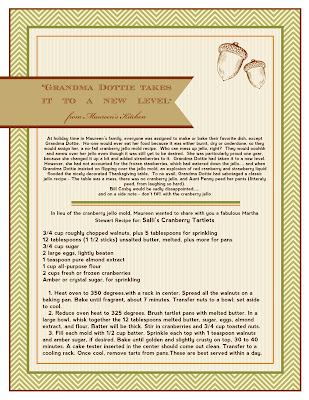 In lieu of the cranberry jello mold, Maureen wanted to share with you a fabulous Martha Stewart Recipe for: Salli’s Cranberry Tartlets