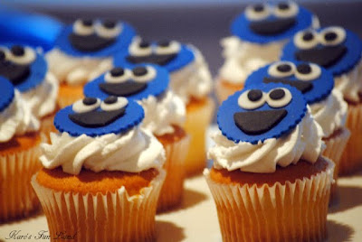 “Sunny Day / Sweepin’ the clouds away / On my way to where the air is sweet / Can you tell me how to get, / How to get to Sesame Street …” Our client, Karolina knows the way to Sesame Street! Karolina planned an amazing first birthday party for son Sebastian with our Sesame Street Cookie Monster Inspired Birthday Party printables. Karolina also posted pictures from her baby’s party on her blog, Karo’s Fun Land. Totally adorable and totally making me hungry…