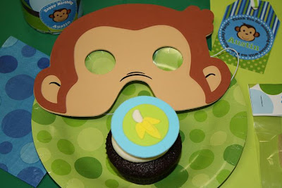 Love the place settings with the sweet monkey mask and adorable cookie favors…
