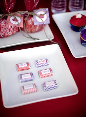 Mara styled this gorgeous Holiday Dessert table with our printable graphics. You are going to love how simple, yet elegant this table setting is… from candy wreaths to candy treats (chocolate bark- so YUM)…. we just love her vibrant non-traditional color scheme.