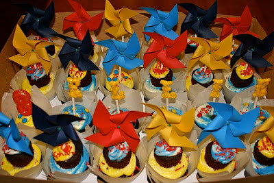 Erika, we love what your baker did with these treats (just look at the presentation with the pinwheels, and the cupcake toppers that spell out Ellie’s name). The envelopes containing Ellie’s invitation were personalized with a coordinating label sticker.